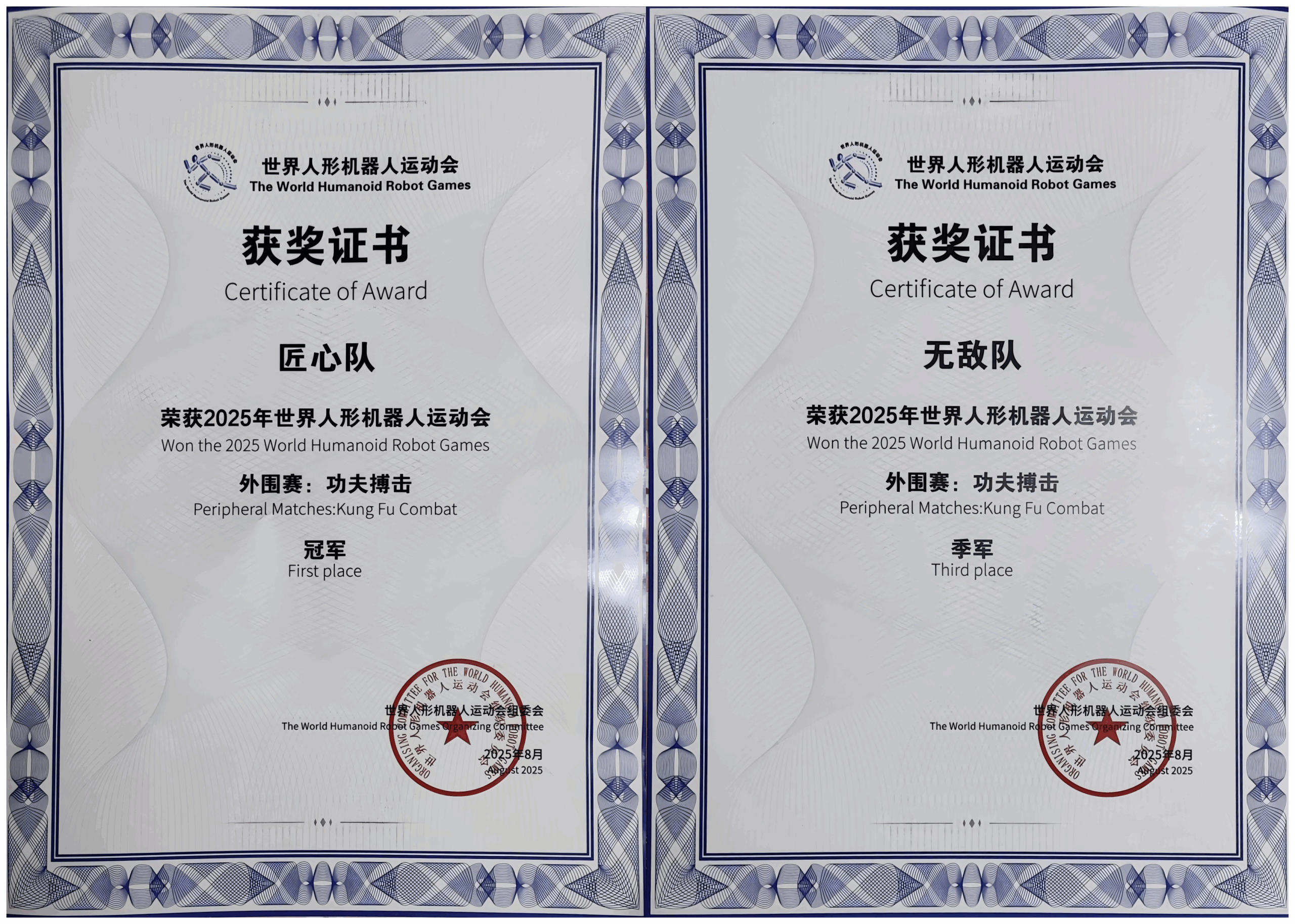 Exciting news emerged from the 5th World Humanoid Robot Games in 2025: Fashion Star Technology’s self-developed high-performance humanoid combat robots delivered a strong performance, enabling team"Craftsmanship"and team"Invincible" to sweep both the championship and third place in the "Kung Fu Combat" event. This outstanding achievement fully demonstrates our robots' superior competitive strength and technological leadership.